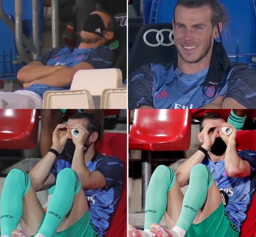 "Gareth Bale lại là tâm điểm của truyền thông khi giả vờ ngủ đúng lúc cậu ấy biết mình sẽ không có cơ hội ra sân ở trận gặp Granada. Khi nhìn thấy hình ảnh này, tôi không thể tin vào mắt mình. Tôi đã theo dõi toàn bộ những hành động, từ lấy khẩu trang bịt mặt, bịt mắt và nằm lăn ra.
