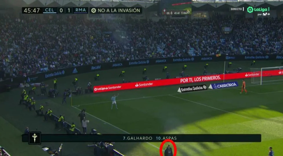 Người hâm mộ thông qua ống kính truyền hình có thể nhìn thấy rõ rảnh Bale cùng đồng đội Mariano Diaz thản nhiên dạo bước trên đường piste để tiến về phía khu vực cabin của Real, gần 1 phút sau khi hiệp 2 bắt đầu.