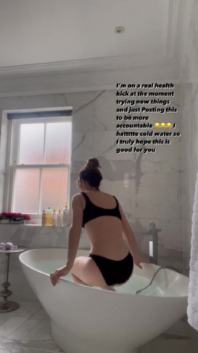 Trong những hình ảnh mới nhất, Catherine tiết lộ thói quen tăng cường sức khỏe bằng cách ngâm mình trong bồn tắm nước đá.
