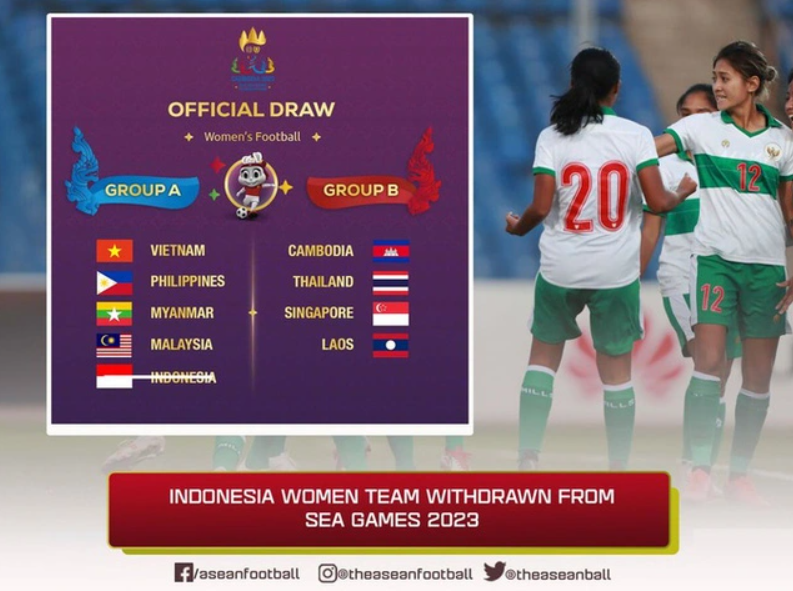 Theo trang Goal phiên bản Indonesia, ĐT nữ nước này sẽ không tham dự SEA Games 32. Sau đó, LĐBĐ Campuchia đã xác nhận thông tin này, nhưng lý do ĐT nữ Indonesia rút lui vẫn chưa được công bố.