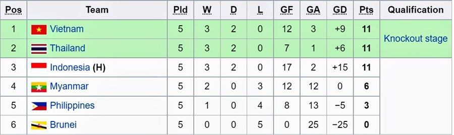 Trong khi U19 Indonesia chỉ xếp thứ 3 và bị loại do thua hai đối thủ về chỉ số phụ.