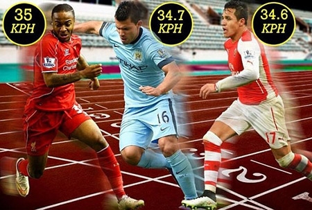 Dù được đánh giá là cầu thủ sở hữu tốc độ tốt, nhưng Alexis Sanchez (Arsenal) và Luke Shaw (M.U) chỉ lần lượt xếp ở vị trí thứ 13 và 18 trong top 20 cầu thủ sở hữu tốc độ tốt nhất Premier League lượt đi mùa này. Tiền đạo người Chile chạy với tốc độ đạt 34,6 km/h ở trận Arsenal đụng độ Newcastle vào ngày 13/12/2014. Bứt tốc 34,2 km/h ở trận đối đầu Chelsea, hậu vệ trái Luke Shaw của Quỷ đỏ xếp thứ 18.