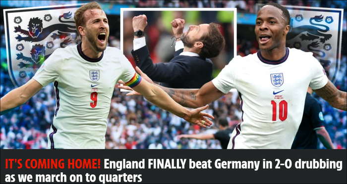 "Sau 55 năm sống trong niềm đau, cuối cùng tuyển Anh cũng đánh bại được kình địch Đức. Người hùng của chúng ta ở kỳ Euro này, Raheem Sterling, và Harry Kane tỏa sáng đưa thầy trò Southgate vào tứ kết", cây viết Peter Smith của tờ Sky Sports viết.