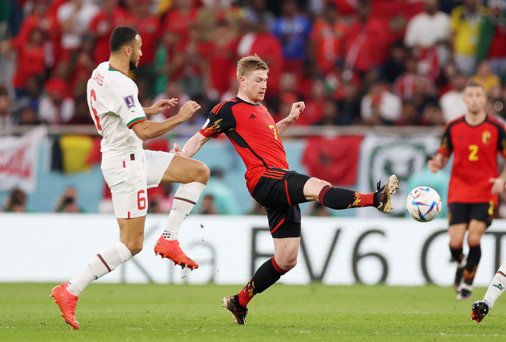 De Bruyne có màn trình diễn kém thuyết phục trước Maroc. Xuyên suốt trận đấu, De Bruyne mất bóng 27 lần, tỷ lệ chuyền thành công chỉ đạt 75% và không có pha dứt điểm trúng đích nào.