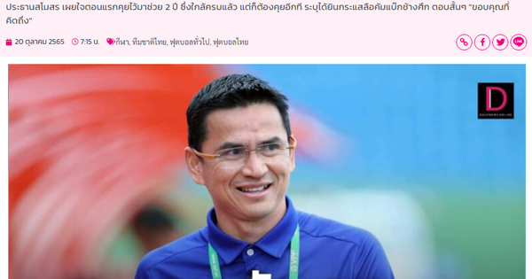 Nội dung bài viết cũng khẳng định tương lai của HLV Kiatisak vẫn chưa được định đoạt và nhiều khả năng chiến lược gia người Thái Lan sẽ không gia hạn hợp đồng với CLB Hoàng Anh Gia Lai để trở về quê nhà nắm đội tuyển quốc gia.