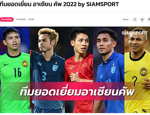 18/01/2023 01:14Báo Thái Lan bất ngờ gạt Tiến Linh, Văn Lâm khỏi đội hình tiêu biểu AFF Cup 2022