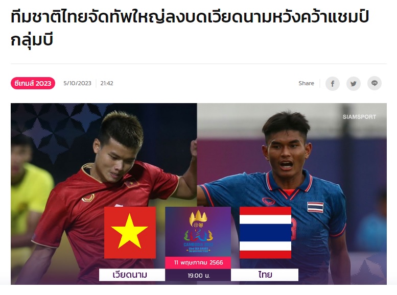 SiamSport cho rằng: “Trong tay HLV Sritaro lúc này đang có những cầu thủ tốt nhất. Trung vệ trụ cột Khemdee cũng đã kịp đến hội quân. Chúng ta sẽ đè bẹp tuyển Việt Nam với hy vọng dẫn đầu bảng B”.