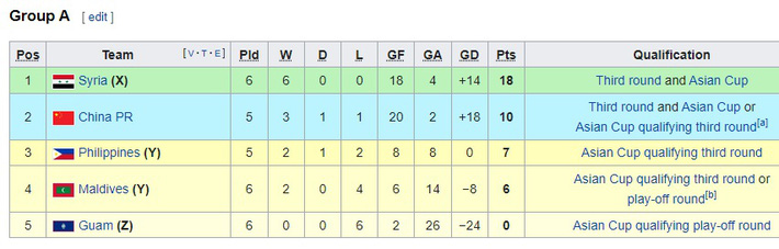 "Trong khi ĐTQG Trung Quốc vẫn đang loay hoay với vị trí nhì bảng ở vòng loại World Cup thì tuyển Việt Nam vẫn ung dung đứng nhất bảng. Sau 5 trận đã đấu, họ thắng 3, hòa 2, chỉ để thua một bàn. Kỷ lục này tạo cơ sở để họ ngự trị ngôi đầu bảng.