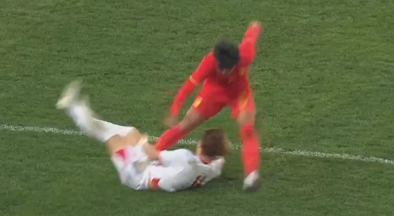 Dường như các cầu thủ Trung Quốc có rất ít kinh nghiệm thi đấu. Hậu vệ mang áo số 3 Zhang Yixuan tưởng như sẽ là chốt chặn tin cậy khi được đá chính lại bị đuổi khỏi sân vì lỗi thô bạo, trong khi các cầu thủ chạy cánh thường xuyên chuyền bóng vào chân đối phương.