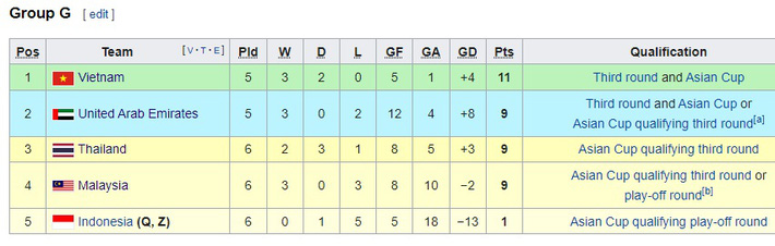 Việc thắng đậm Malaysia giúp tuyển UAE nâng thành tích lên thành 9 điểm, ngang bằng với Thái Lan và Malaysia, trong khi đội tuyển màu áo trắng (UAE) vượt trội so hiệu số bàn thắng bại so với các ứng viên cạnh tranh, trong đó có Thái Lan – đối thủ tiếp theo của chúng ta vào thứ Hai tuần tới. Đây sẽ là trận đấu mà cả hai đội đều đặt tham vọng rất lớn vào một chiến thắng.