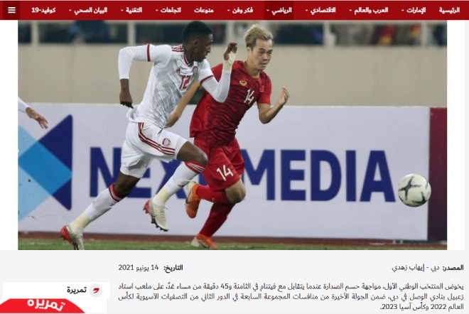 15/06/2021 17:30Báo UAE: 'Thắng Việt Nam là nhiệm vụ trong tầm tay'