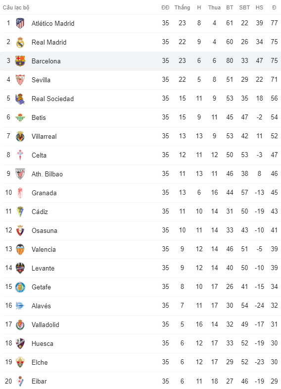 Dù vậy, với khoảng cách chỉ 2 điểm, Barca sẽ đánh chiếm thành công ngôi đầu và gây áp lực lớn lên 2 đối thủ cạnh tranh trực tiếp, nếu đánh bại Levante ở trận đấu lúc 3h ngày 12/5, theo giờ Việt Nam.