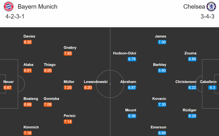 Ở trận đấu lượt đi, Bayern Munich dù phải làm khách trên sân Stamford Bridge nhưng đã thể hiện sức mạnh vượt trội trước đội chủ nhà. Bộ đôi Davies và Gnabry đã liên tiếp tạo nên những cơn "ác mộng" cho Chelsea.