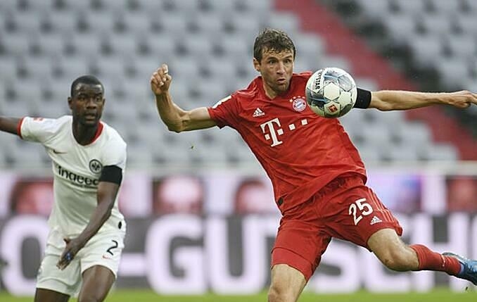 Sân Allianz không khán giả, nhưng Frankfurt cũng chỉ đứng vững được 17 phút trước sức ép của Bayern. Thomas Muller tiếp tục chơi ấn tượng dưới thời Hansi Flick, khi đột phá và kiến tạo để Leon Goretzka đệm bóng mở tỷ số. Đến phút 41, chính Muller lập công, sau quả tạt của hậu vệ Alphonso Davies - người chơi nổi bật bên phía Bayern ở trận này.
