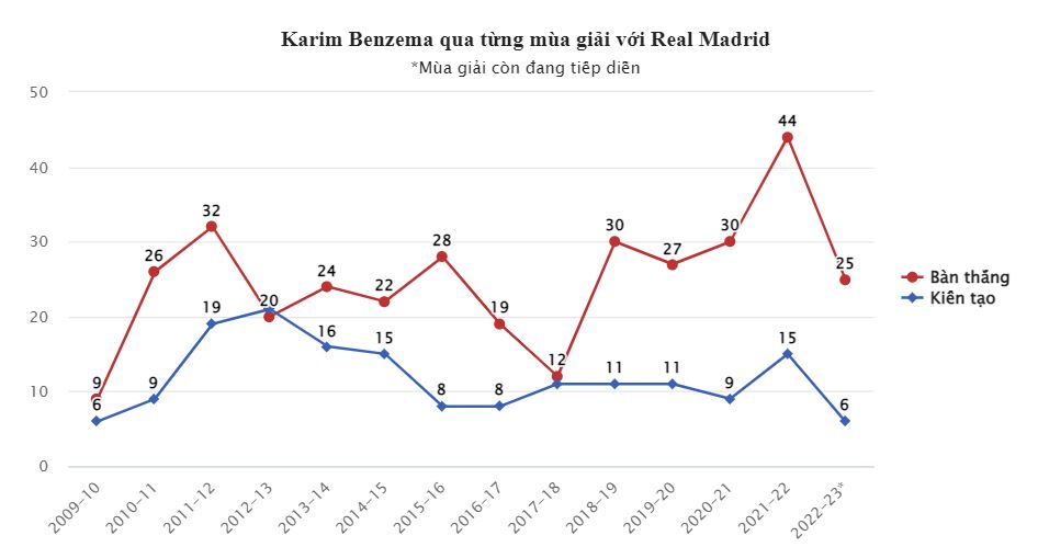 Hat-trick tung lưới Barca cũng nâng thành tích của Benzema lên 25 bàn. Anh trải qua mùa thứ 11 trong 14 mùa vượt mốc 20 bàn với đội chủ sân Bernabeu.