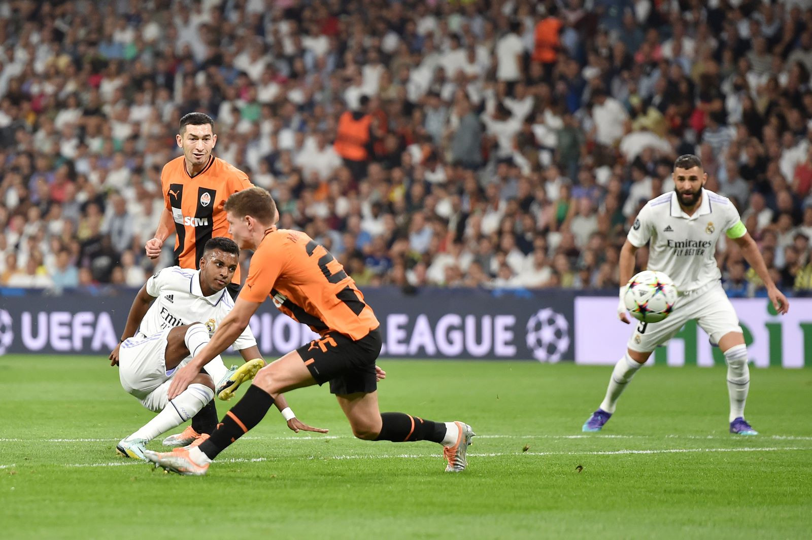 Tiền đạo chủ lực Benzema kém duyên, Real Madrid đánh bại Shakhtar Donetsk nhờ các pha lập công của Rodrygo và Vinicius. Kết quả này giúp ĐKVĐ củng cố ngôi đầu bảng F Champions League sau lượt trận thứ 3.