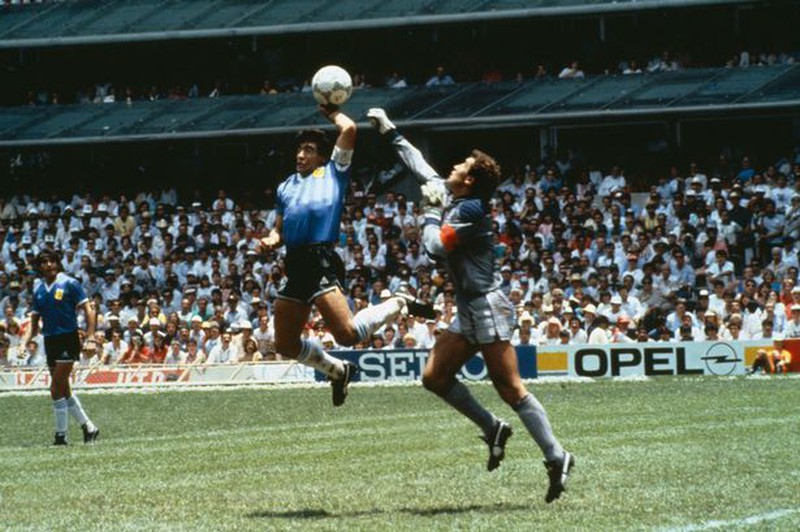 Ở pha lập công đầu tiên, Maradona dùng tay đẩy bóng vào lưới mà vẫn được trọng tài công nhận. Bàn thắng đó sau này nổi tiếng với tên gọi “bàn tay của chúa”.