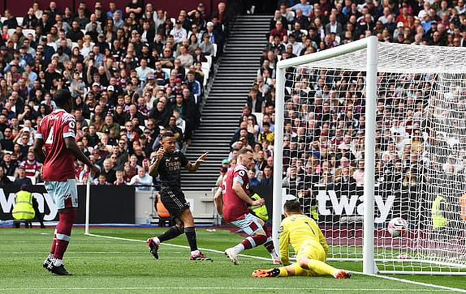 Một chiến thắng cho Arsenal là điều phần đông tin tưởng, nhưng không ai nghĩ Pháo thủ lại có khởi đầu thuận lợi đến vậy trước West Ham ngay trên sân London. Phút thứ 7, tiền vệ đội trưởng Martin Odegaard chọc khe để Ben White thoát xuống sát đường biên ngang trong vòng cấm. Hậu vệ mang áo số 4 sau đó căng ngang vào để Jesus dễ dàng đệm bóng cận thành mở tỷ số cho Arsenal.