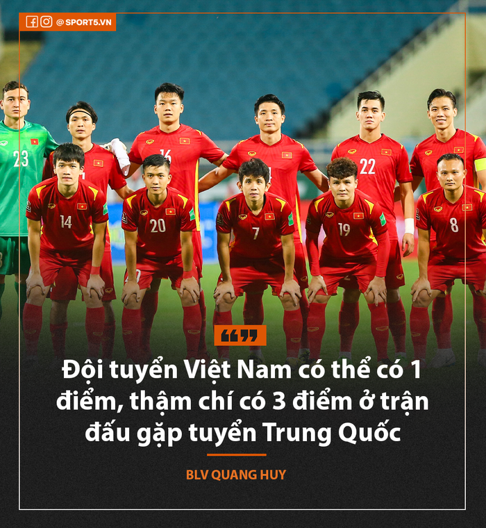 Tôi nghĩ rằng chúng ta có thể có 1 điểm, thậm chí có 3 điểm nhưng mà tôi cho rằng 1 điểm ở trận đấu này là tốt rồi. Cá nhân tôi cho rằng trận đấu này sẽ có tỉ số hoà 1-1, chúng ta sẽ ghi được bàn thắng và có điểm số đầu tiên ở vòng loại thứ 3 World Cup 2022.