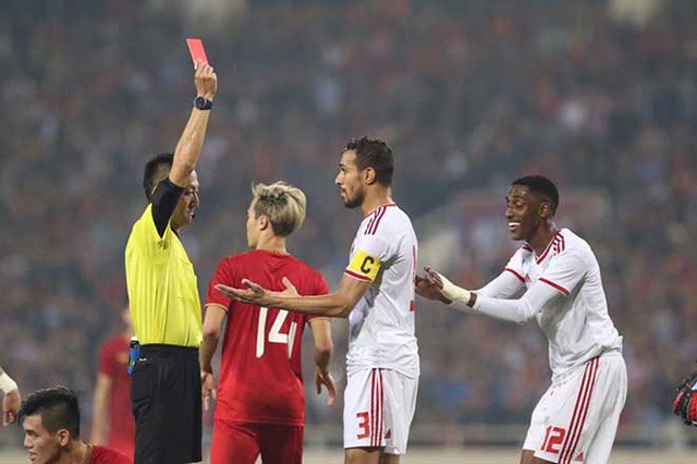 Bước ngoặt của trân đấu xảy ra và phút thứ 37, khi Tiến Linh bị cầu thủ Al Hammadi đẩy ngã từ phía sau. Với pha phạm lỗi này, trọng tài không ngần ngại rút ra thẻ đỏ trực tiếp tước quyền thi đấu cầu thủ đội bạn.