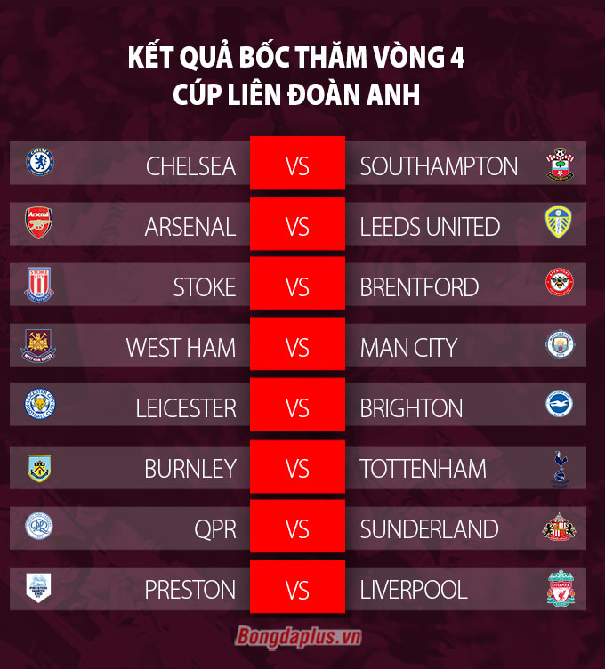 Với Tottenham, họ cũng cần nhờ tới loạt sút luân lưu để vượt qua Wolves và sẽ đối đầu đối thủ đang gặp khó khăn ở Ngoại hạng Anh 2021/22 là Burnley. Do Burnley đang đứng thứ 19 trên BXH nên chắc chắn, họ sẽ ưu tiên Ngoại hạng Anh hơn đấu trường cúp Liên đoàn. Còn với Leicester, CLB của HLV Brendan Rodgers sẽ có cơ hội "rửa hận" khi chạm trán Brighton - đối thủ từng thắng họ 2-1 vào hôm 19/9 vừa qua.