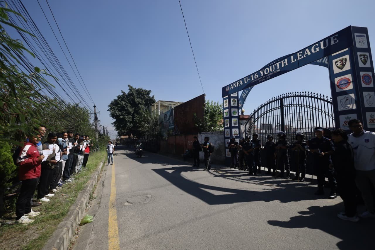 Trưa ngày 12/10, đông đảo người hâm mộ đã tập trung trước khu phức hợp của Liên đoàn bóng đá Nepal (ANFA) ở Satdobato, yêu cầu khôi phục lại giải bóng đá hạng cao nhất Nepal A-Division League.