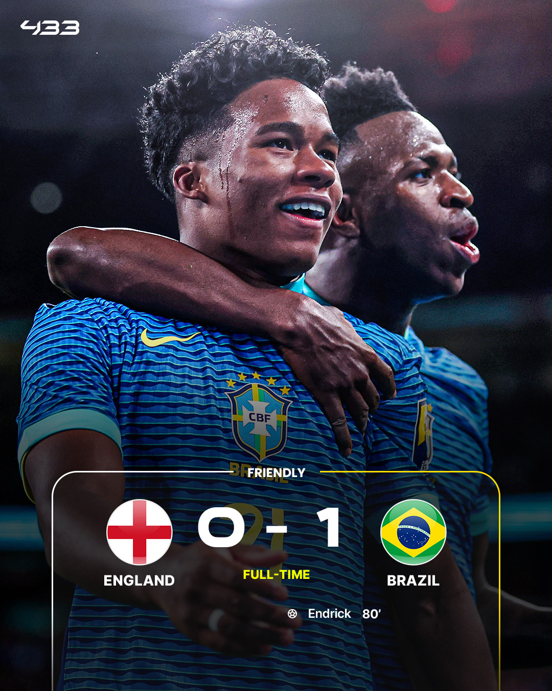 Pha lập công duy nhất của tài năng trẻ Endrick đem về chiến thắng 1-0 cho Brazil trước tuyển Anh, trong trận giao hữu tại Wembley.