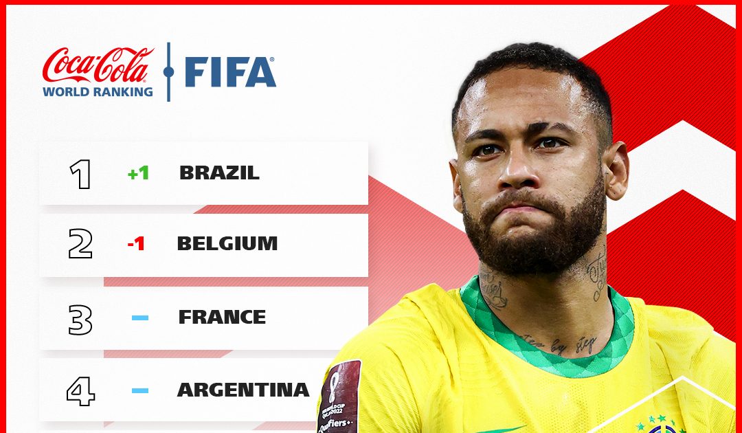 01/04/2022 16:20Brazil soán ngôi Bỉ để đứng đầu thế giới trước lễ bốc thăm World Cup 2022
