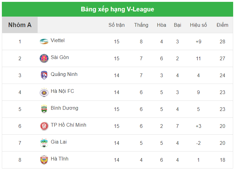 Như vậy, thầy trò HLV Trương Việt Hoàng đã vươn lên chiếm ngôi đầu với 28 điểm, nhiều hơn Sài Gòn FC đúng 1 điểm.