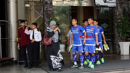 Ngay sau khi rời khách sạn, U23 Việt Nam được BTC giải bố trí xe hiện đại chở đến các sân tập |