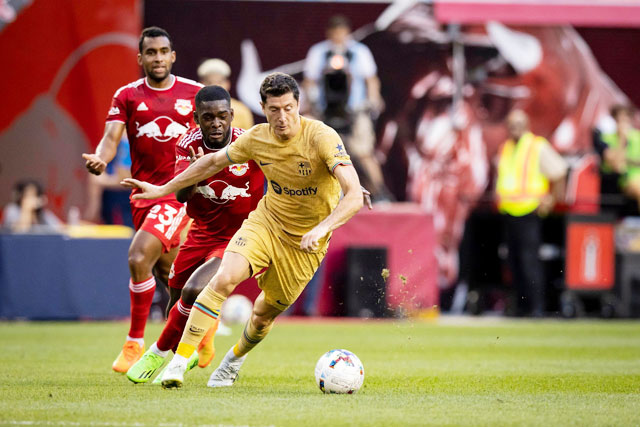 Lewandowski có một trong những tân binh của Barca hè này, bên cạnh Jules Kounde, Andreas Christensen, Franck Kessie và Raphinha. Tiền đạo Ba Lan tịt ngòi cả ba trận giao hữu tiền mùa giải cùng Barca, thắng Real 1-0, hòa Juventus 2-2 và thắng New York Red Bulls 2-0.