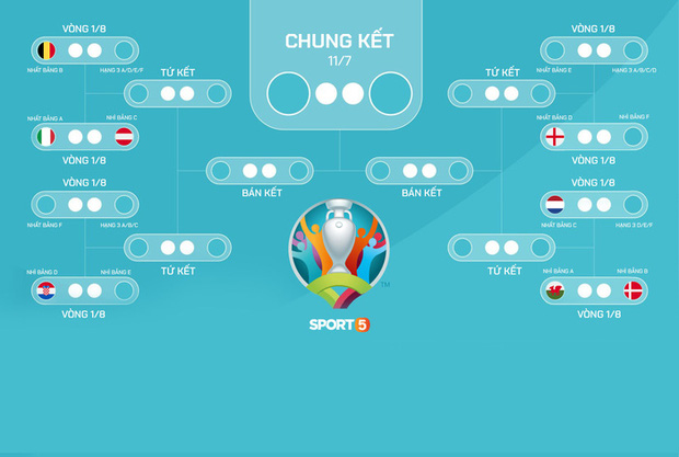 23/06/2021 16:37Cập nhật 23/6: Phân nhánh vòng đấu loại trực tiếp Euro 2020 và bảng xếp hạng các đội thứ ba