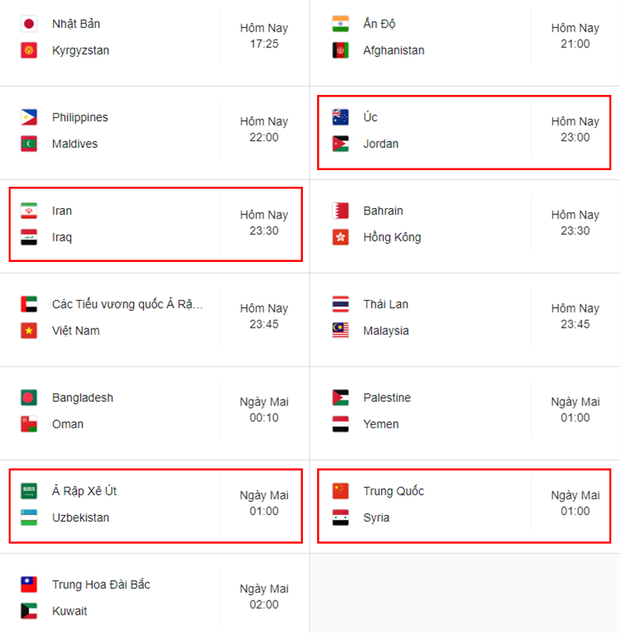 Tổng hợp đến thời điểm hiện tại, đội tuyển Việt Nam của chúng ta chỉ bị loại khi tất cả các điều kiện sau xảy ra: Việt Nam thua UAE, Trung Quốc có điểm trước Syria, Iran thắng Iraq, Jordan thắng Australia, Uzbekistan thắng Saudi Arabia.