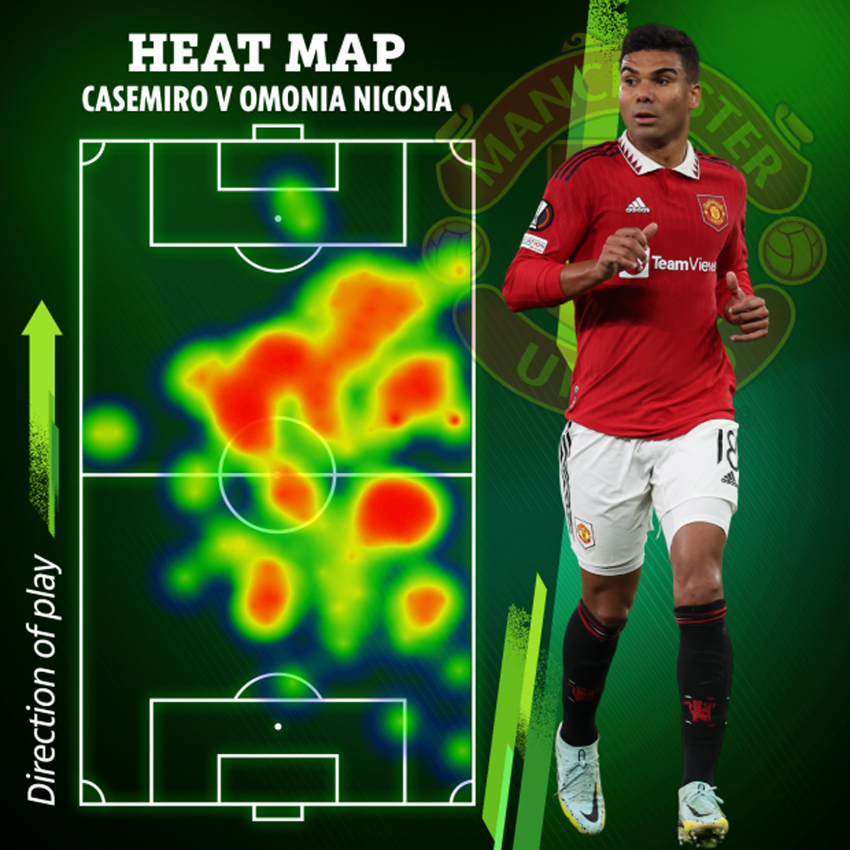 Trước Omonia, số 18 của Quỷ đỏ có 94 lần chạm bóng và tạo ra 2 cơ hội, theo SofaScore. Tiền vệ người Brazil kết thúc trận đấu với tỷ lệ chuyền bóng chính xác là 83% và hoàn thành 5 trong số 6 đường bóng dài của mình.Một thống kê ấn tượng là Casemiro đã thắng trong 12 lần tranh chấp tay đôi, thực hiện 2 pha đánh chặn và 4 lần tắc bóng.