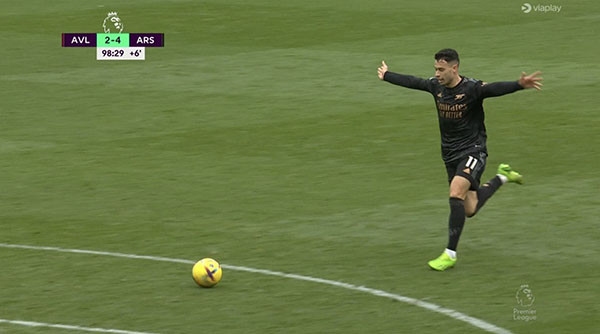 Pha ăn mừng quá sớm của cầu thủ người Bồ Đào Nha cũng không bị lố, bởi Martinelli sau đó dẫn bóng đến sát khung thành rồi ghi bàn dễ dàng nhất trong sự nghiệp.