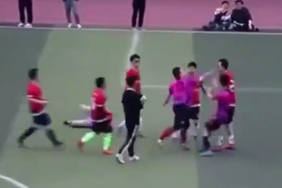 Một đoạn video đăng tải lên mạng xã hội Weibo hôm 14/5 gây phẫn nộ cùng cực trong cộng đồng những người yêu bóng đá Trung Quốc. Theo trang tin Sina Sports, vụ việc trong video diễn ra ở trận đấu giữa Wenxin và Zheitan thuộc giải Sun Cup do Đại học Sư phạm Bắc Kinh tổ chức.