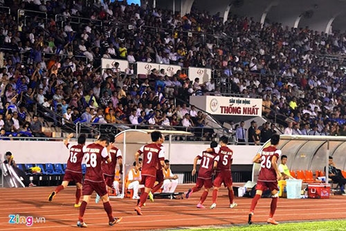 | Lâm Ti Phông ghi bàn cho U21 Việt Nam nhưng khán giả tại khán đài A không mấy hào hứng. |