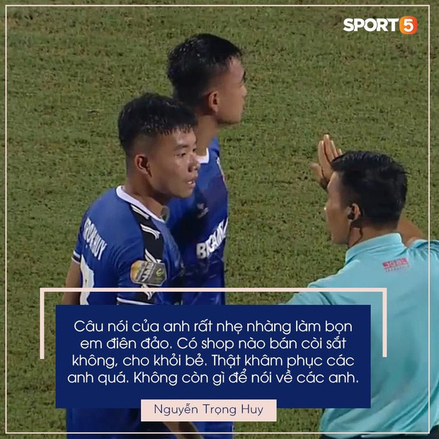 "Câu nói của anh rất nhẹ nhàng làm bọn em điên đảo. Có shop (cửa hàng) nào bán còi sắt không, cho khỏi bẻ. Thật khâm phục các anh quá. Không còn gì để nói về các anh", Trọng Huy chua chát chia sẻ trên mạng xã hội.