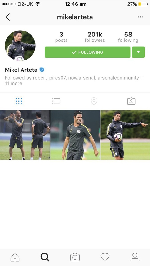 Vì vậy, hành động xóa những bức ảnh mặc áo Arsenal rõ ràng đã khiến các Gooner phát điên. Thậm chí, Arteta còn bỏ theo dõi tài khoản chính thức của Arsenal trên mạng xã hội này.