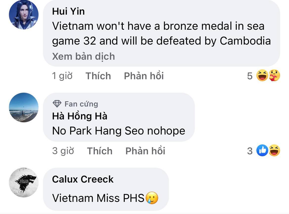 “Không có HLV Park, tuyển Việt Nam chẳng là gì”, CĐV Jerry Yap đến từ Malaysia bình luận. Một tài khoản khác có tên Rivo Revan còn châm chọc: “Việt Nam không có Park Hang Seo chỉ là một đẳng cấp của San Marino”. Thậm chí, một CĐV đến từ Indonesia có tên Fathur Ari đưa ra nhận định: “Việt Nam bây giờ chỉ bằng Timor Leste”.