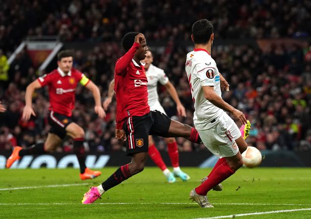 Ở thời điểm đầu trận, Malacia cầm bóng mạo hiểm rồi để mất nhưng rất may, cầu thủ Sevilla đưa bóng vào trong thiếu chính xác. Nhưng khi đó, người ta tạm bỏ qua lỗi cho Malacia vì MU đang cầm bóng tốt hơn và đặc biệt là đủ người.