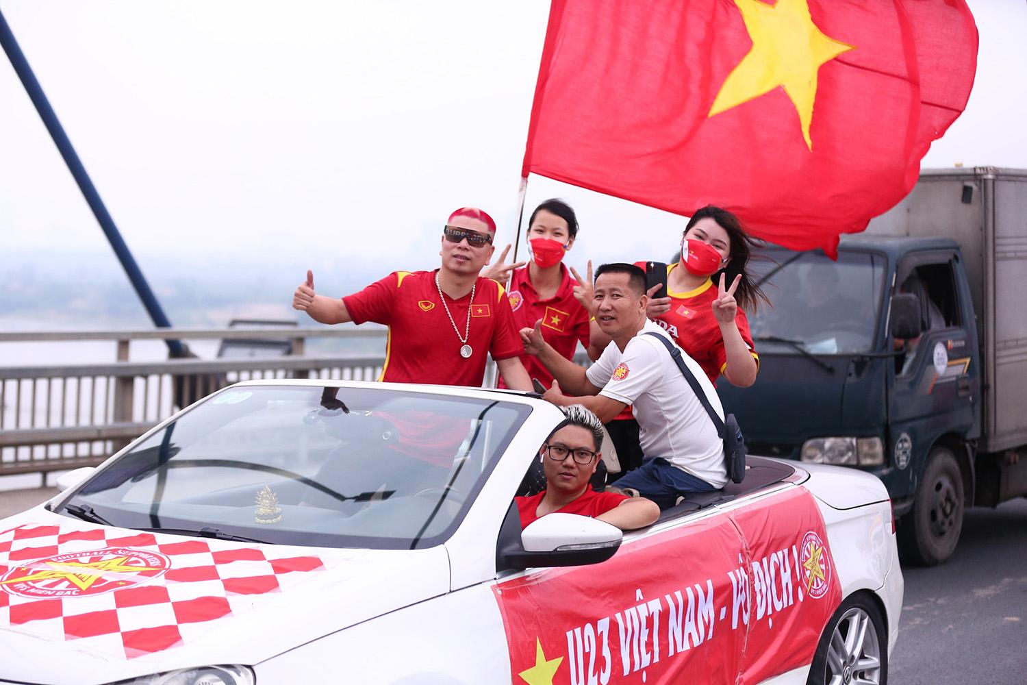 Hàng nghìn CĐV từ Hà Nội và các tỉnh lân cận 'hành quân' lên Phú Thọ tiếp lửa cho U23 Việt Nam đấu Indonesia trong trận ra quân SEA Games 31.