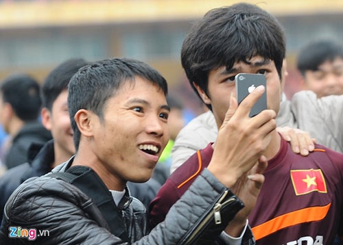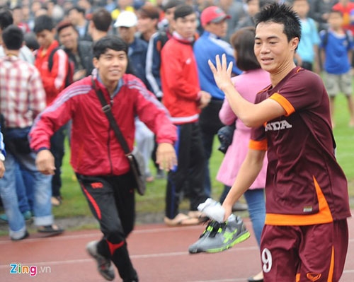 06/03/2015 01:57CĐV tràn xuống sân chụp ảnh với Công Phượng