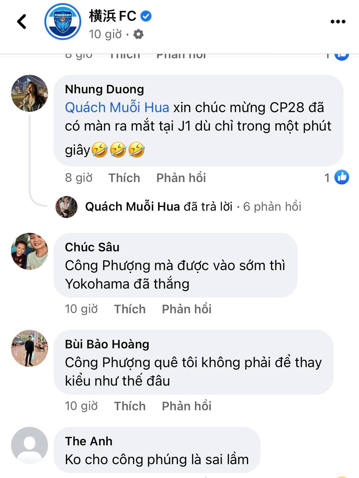 Việc Công Phượng chỉ thi đấu ở phút bù cuối cùng khiến người hâm mộ Việt Nam bức xúc, và đã kéo vào trang chủ CLB Yokohama FC để phản ứng. "Cho Công Phượng vào sân chưa đầy một phút. Nếu cảm thấy không có thực lực thì đừng lấy người ta để quảng cáo chứ" hay "Không cho Công Phượng vào sân sớm, thua đúng" là những bình luận nhiều lượt thích.