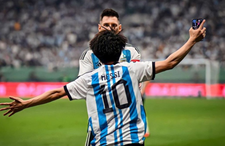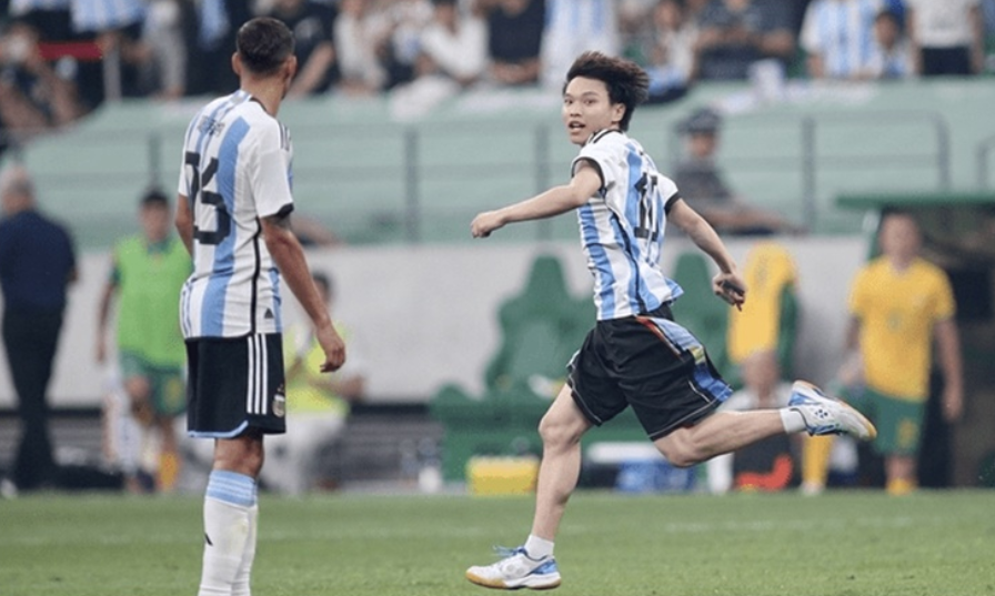 Messi ban đầu có đôi chút bất ngờ và kinh ngạc, nhưng rồi ngôi sao bóng đá này cũng đáp lại tình cảm của CĐV người Trung Quốc. Sau khi ôm Messi, thanh niên này còn hồn nhiên chạy về phía khung thành của Argentina và bắt tay với thủ môn Emiliano Martinez.