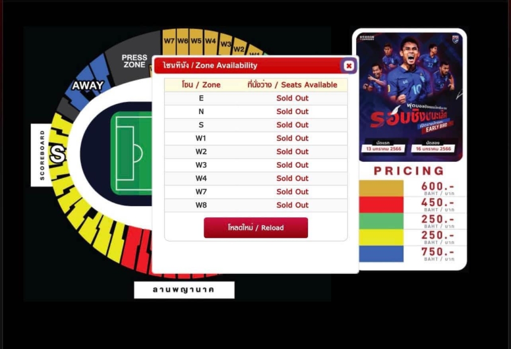 Theo siamsport, 25.000 vé đã bán hết chỉ trong vòng 1 phút. Những người thất bại trong cuộc chiến mua vé chỉ có thể nuôi hy vọng sở hữu thông qua thị trường chợ đen.