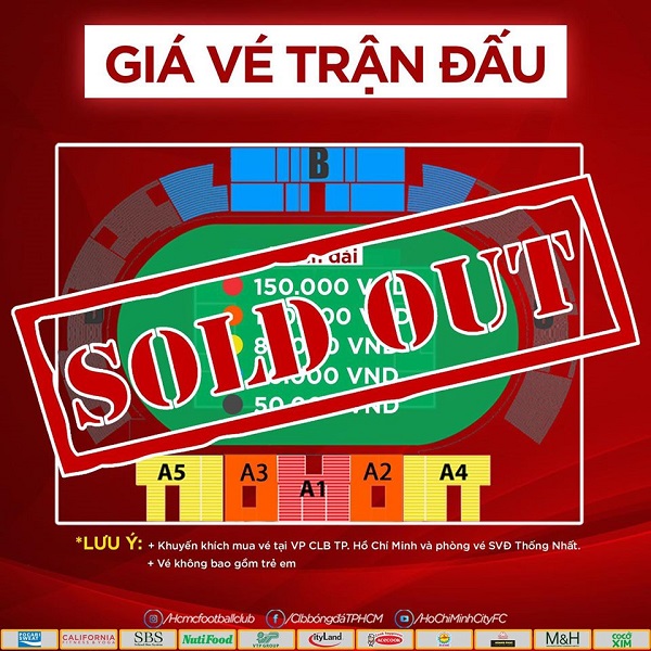 Và đến tối qua ngày 22/7, trang facebook chính thức của CLB TP.HCM đã thông báo vé trận gặp Hà Nội FC đã được bán hết. Điều này đã nói lên sức nóng của cuộc đối đầu giữa 2 đội.
