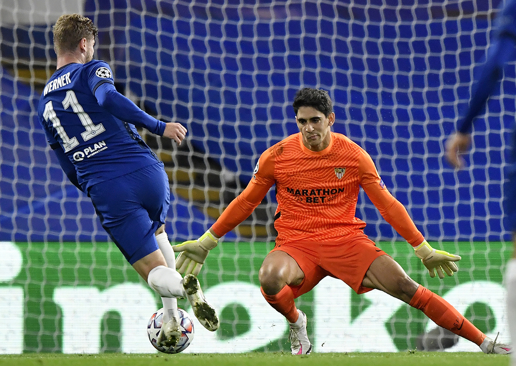 Trong hiệp một, loay hoay trước một Seville cầm bóng tốt, Chelsea phải chờ tới phút 31 mới có cơ hội đầu tiên. Nhưng pha khống chế gọn gàng rồi vặn người dứt điểm điệu nghệ vào góc cao cầu môn đối phương của Timo Werner không thắng được thủ môn Yassine Bounou. Tới phút bù giờ thứ hai hiệp một, Werner còn phung phí một cơ hội nữa khi dứt điểm chệch đích sau đường chuyền của Pulisic.