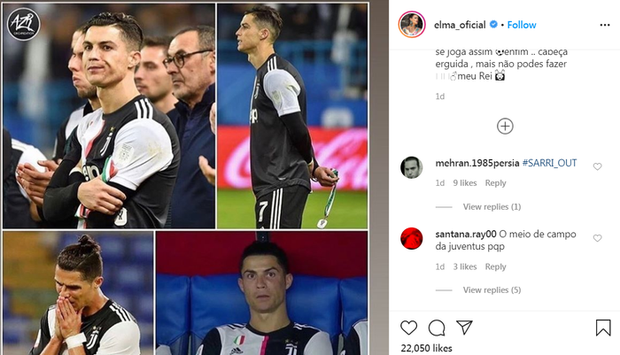 "Ông còn có thể làm gì hơn? Em trai yêu quý của tôi không thể tạo ra phép màu và tự mình làm hết. Tôi không hiểu vì sao đội bóng lại chơi như thế. Suy cho cùng em trai, hãy ngẩng cao đầu vì em không thể làm tất cả mọi việc", Elma Aveiro – chị gái Ronaldo – bực tức chia sẻ công khai trên mạng xã hội.
