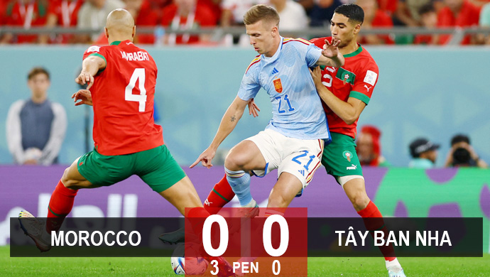 Song, các pha tấn công của Tây Ban Nha vẫn thiếu tốc độ, thiếu ý tưởng sáng tạo. Những phút cuối, Tây Ban Nha liên tục vây hãm khung thành Bounou, nhưng Morocco vẫn đứng vững để kéo trận đấu sang hiệp phụ. Trong 30 phút hiệp phụ, cả Tây Ban Nha và Morocco đều có cơ hội giải quyết trận đấu nhưng đều không tận dụng được, đặc biệt là pha sút chạm cột dọc của Sarabia (120+3’).